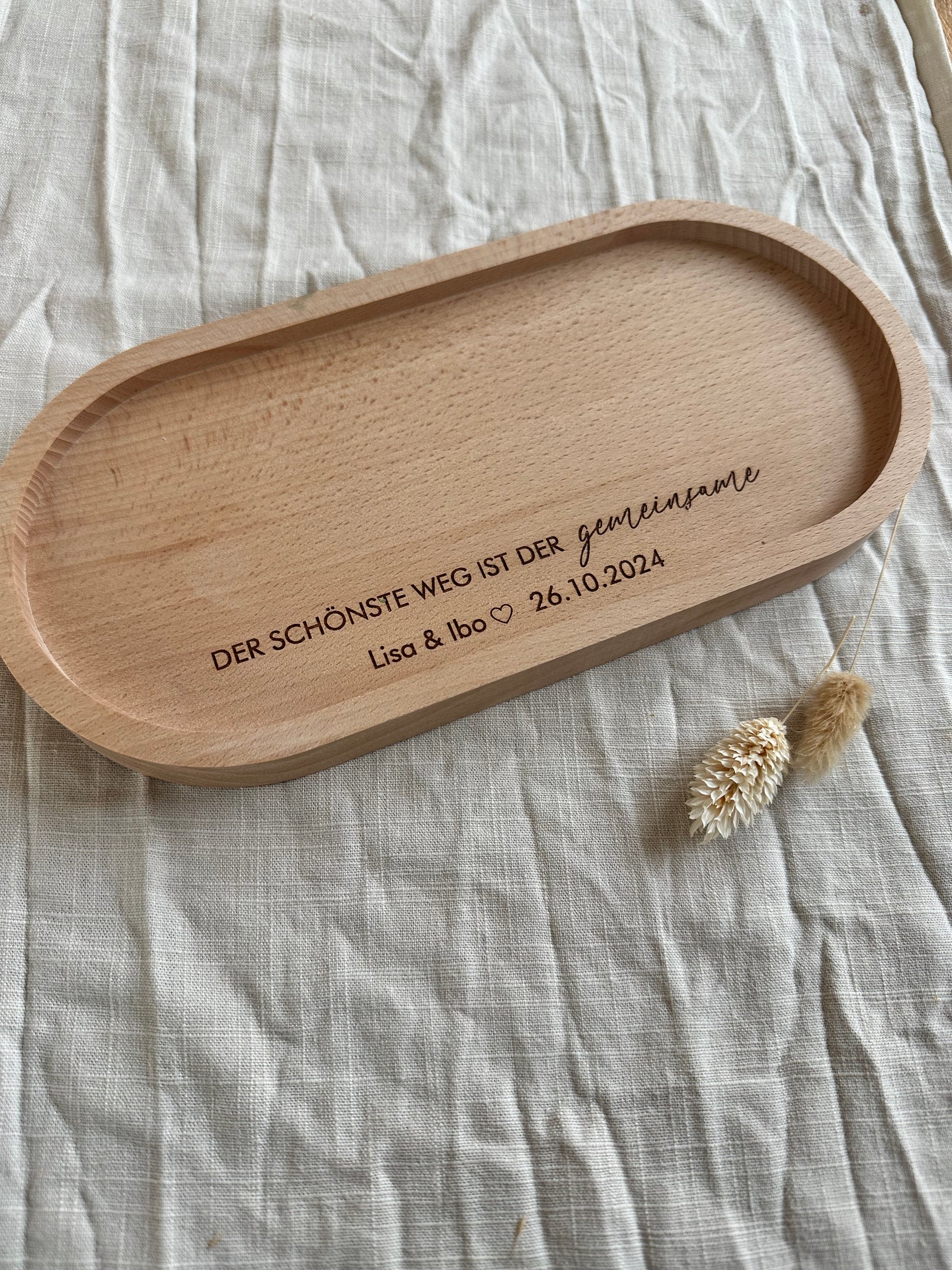 Holztablett „Der schönste Weg ist der gemeinsame“ – personalisiert mit Namen des Brautpaars und Datum der Hochzeit 💍