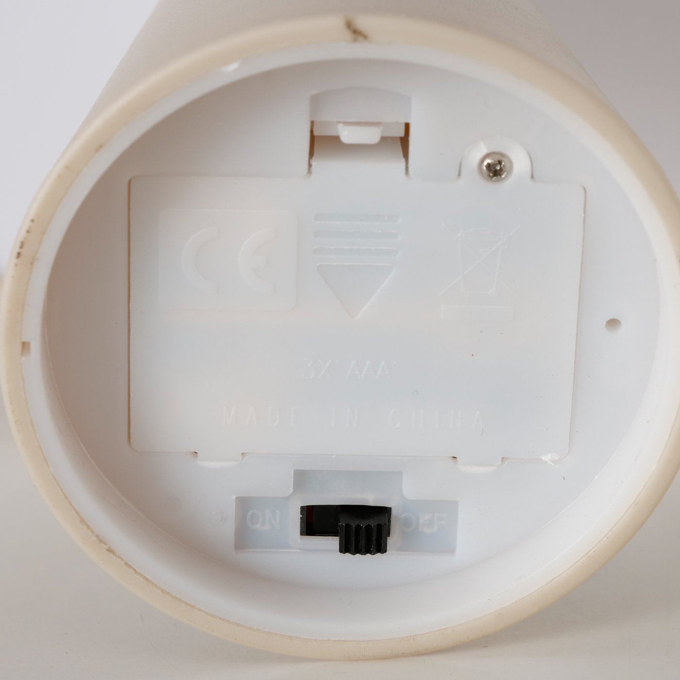 Mit einer Höhe von 17,5 cm und einem Durchmesser von 15 cm fügt sich die Leuchte harmonisch in verschiedene Wohnstile ein. Dank austauschbarer Energiezelle und praktischem Kippschalter sorgt sie jederzeit für warmes, stimmungsvolles Licht – perfekt für Wohn-, Schlaf- oder Arbeitsbereiche.