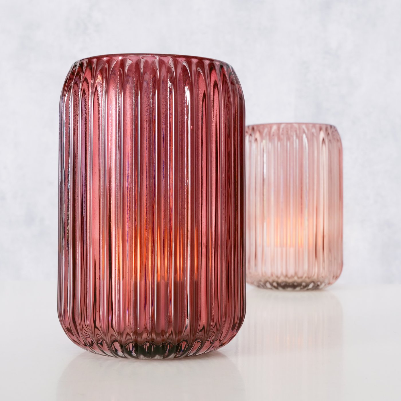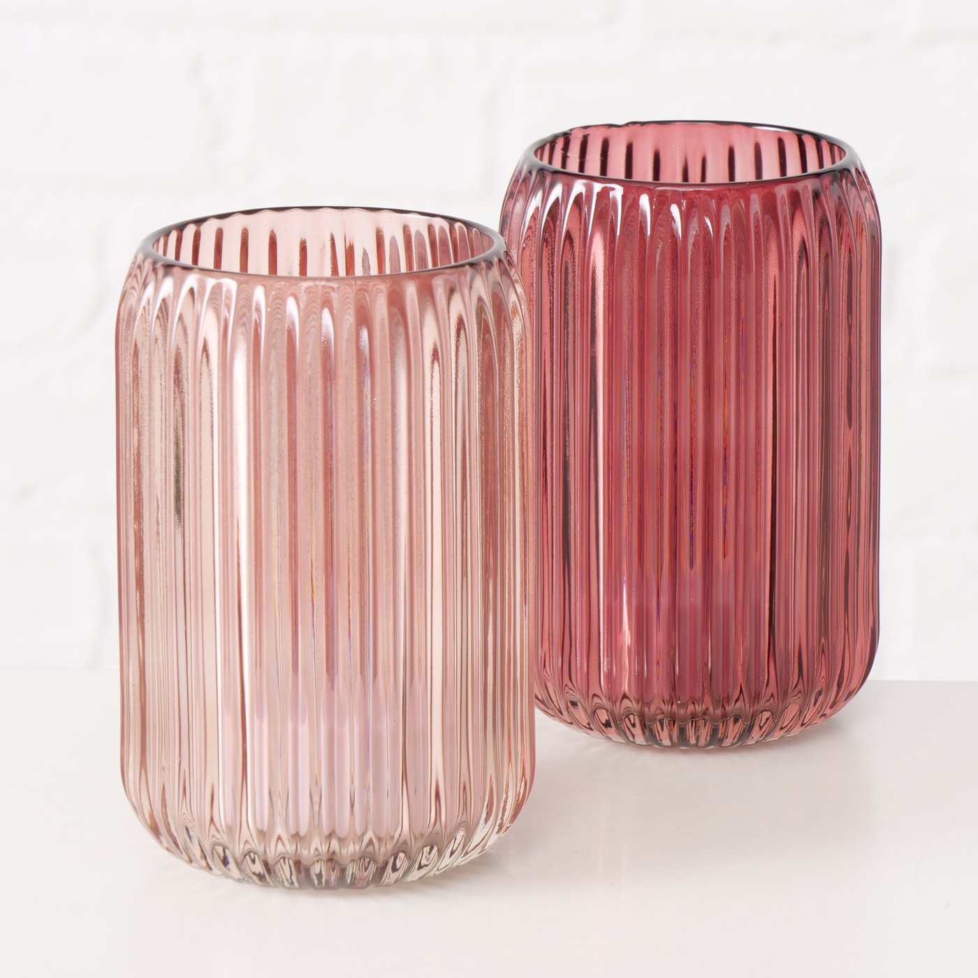 Die Kombination aus hell- und dunkelrosa Tönen, das reliefverzierte Glas und die edle Lackierung machen es zu einem echten Hingucker – ob auf dem Fensterbrett, Sideboard oder als stimmungsvolle Tischdekoration.