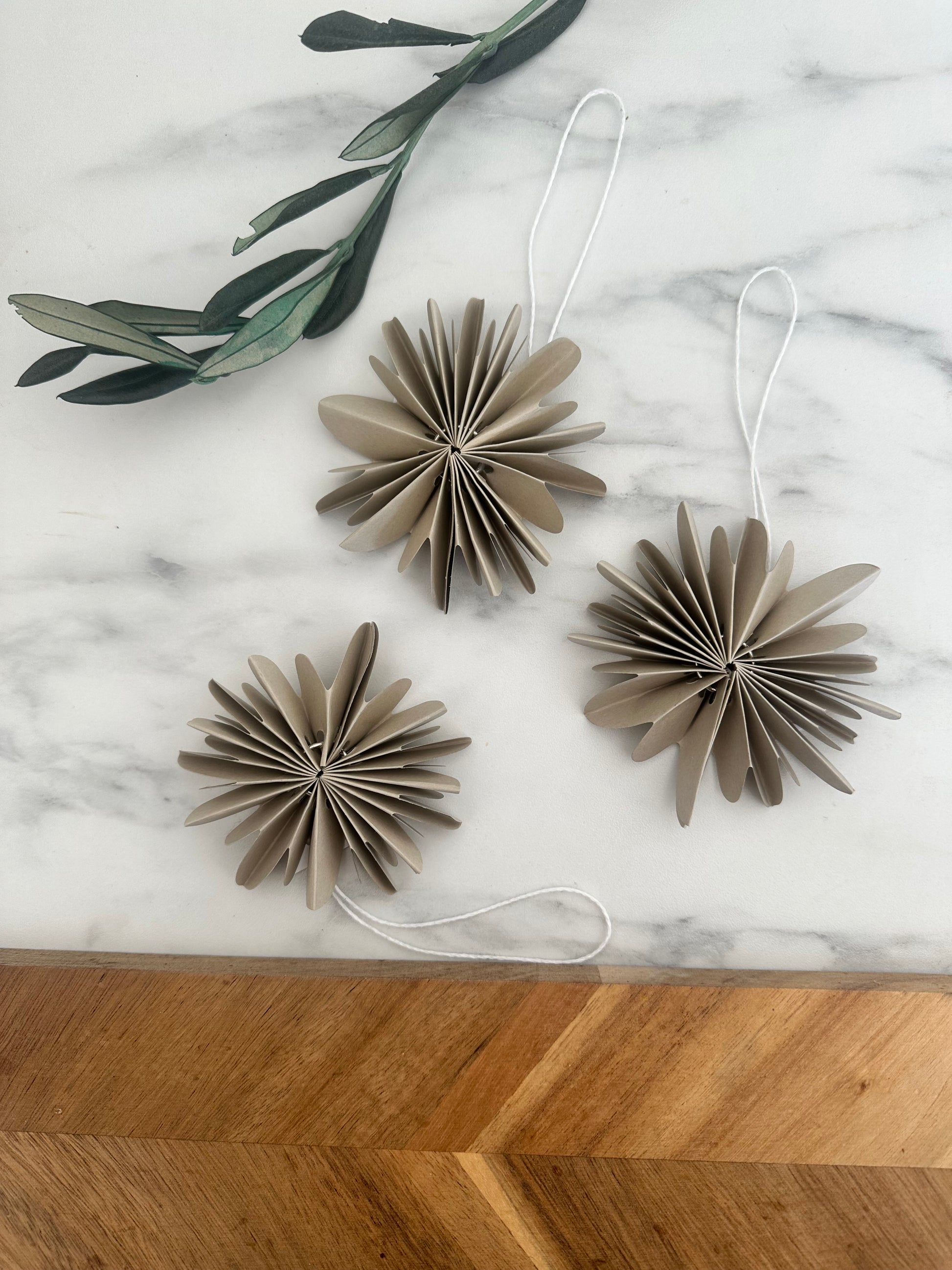 Diese Papiersterne und Schneeflocken sind eine zeitlose und nachhaltige Weihnachtsdekoration im skandinavischen Stil und perfekt für deinen Baumschmuck. Die filigranen Formen in natürlichen Farben bringen Leichtigkeit und Eleganz in deine Winterdeko und passen perfekt zu einem modernen, minimalistischen Zuhause.